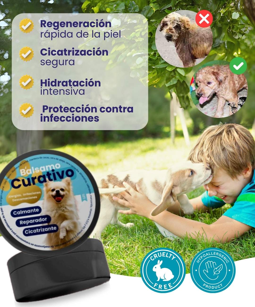 Contenido: 50 mlIngredientes principales: Aloe Vera, Manteca de Karité, Vitamina E, Aceite de Caléndula, Extracto de Árnica.Beneficios: Acelera la cicatrización, alivia irritación y enrojecimiento, hidrata profundamente, reduce cicatrices.Textura: Crema ligera y de rápida absorción.Modo de uso: Aplicar sobre piel limpia 2-3 veces al día.Precauciones: Solo para uso externo. Evitar ojos y heridas profundas.Apto para: Todo tipo de piel y mayores de 3 años.