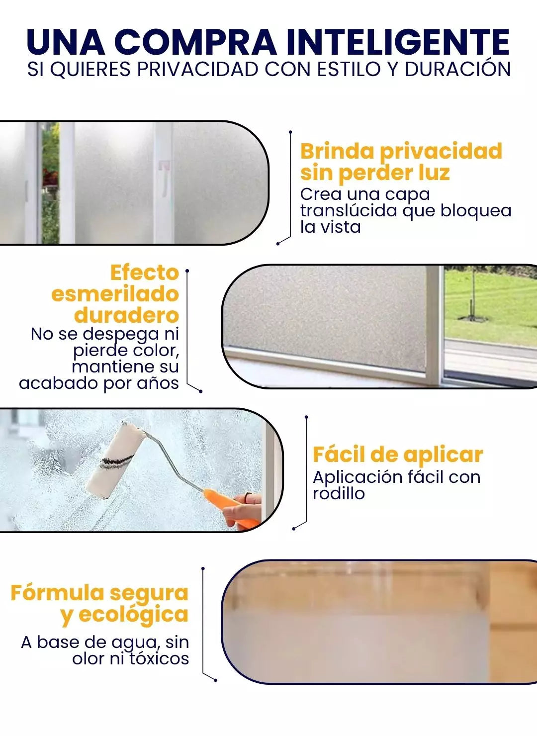 Sí, es compatible con ventanas, puertas, espejos o divisiones interiores. No se recomienda sobre plástico o acrílico.