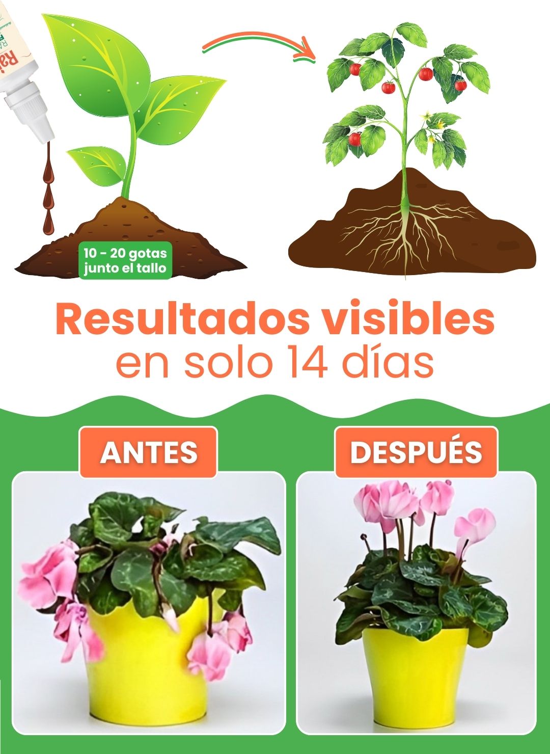 Agrega de 10 a 20 gotas directamente en la base del tallo de la planta según el modo de uso.
